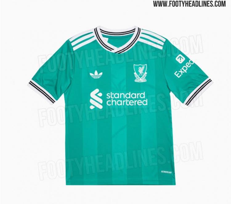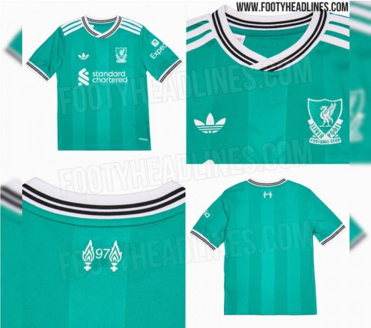 阿迪达斯为利物浦设计的2025-26赛季第三球衣采用了薄荷绿(官方称为“海绿色”),并带有白色装饰。这款球衣还采用了现代化的经典利物浦队徽。